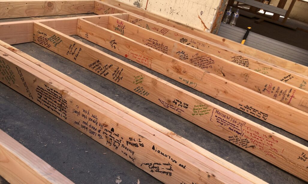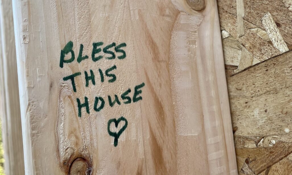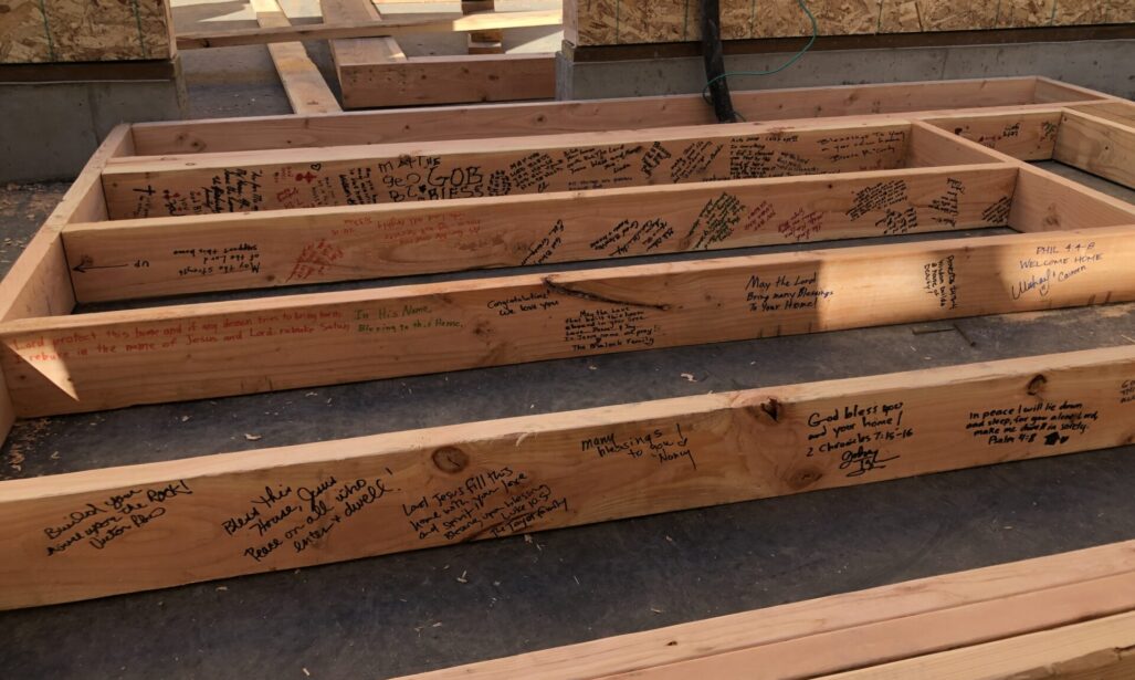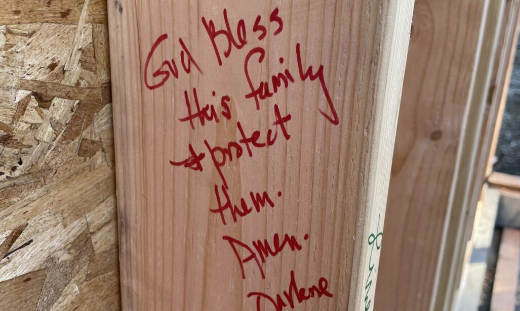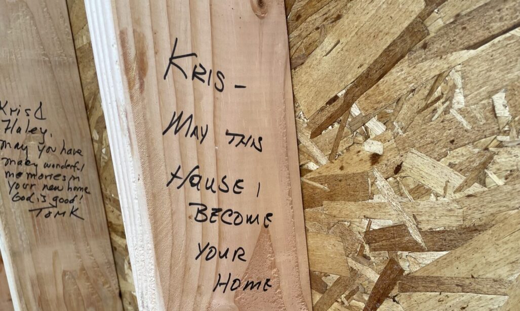 In Habitat tradition, the first walls of a Building on Faith home are covered in prayers, blessings and well-wishes by congregants of local churches. Between Chapel Hill and other Building on Faith partners, Kris’ new home is literally built with blessings in its very walls.