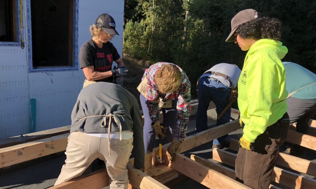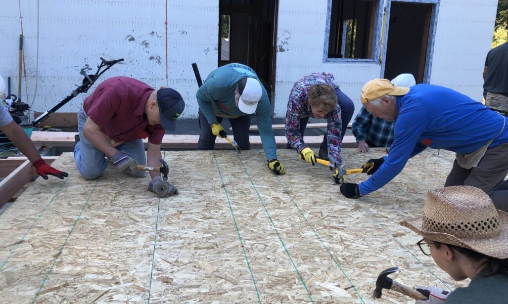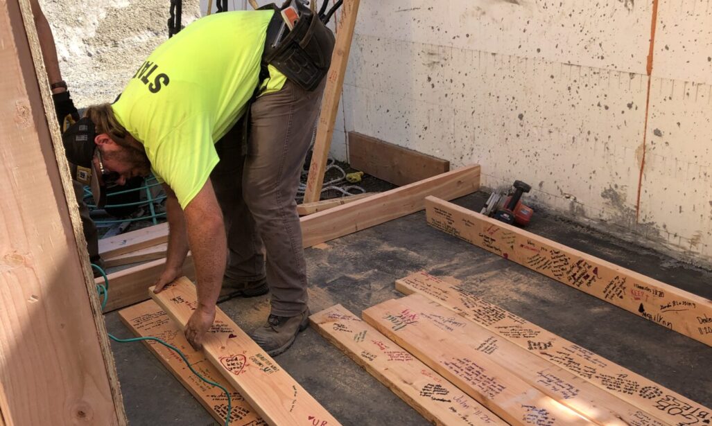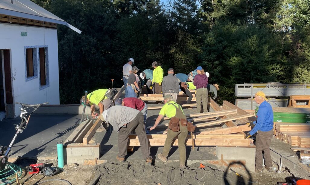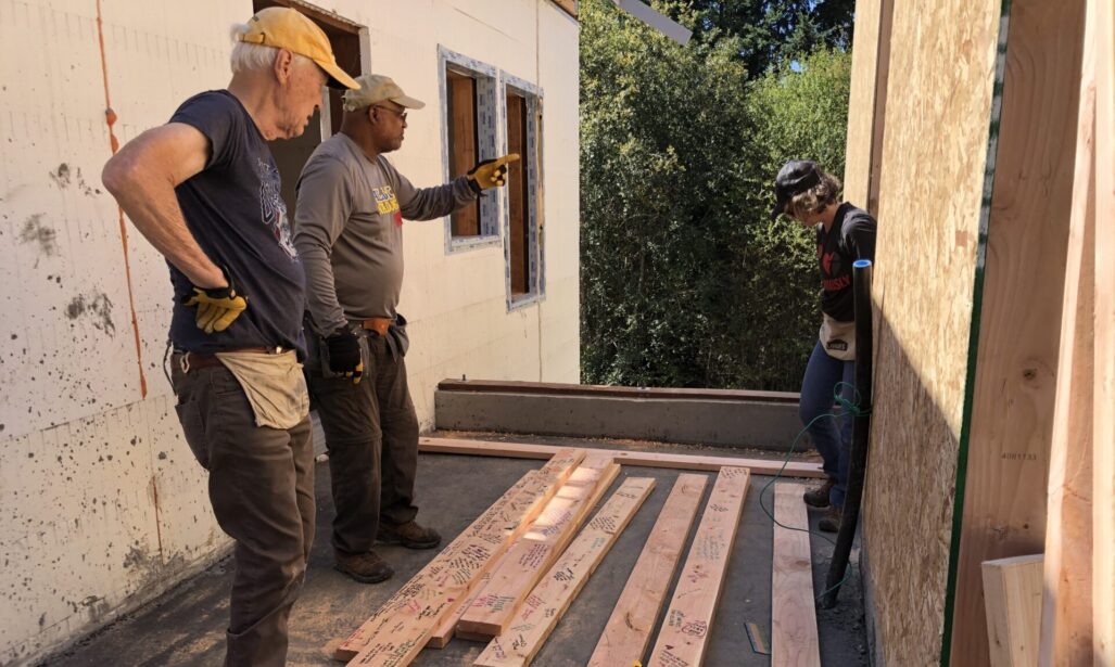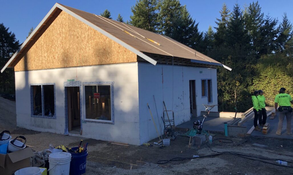 For the first time in more than a decade, Tacoma Habitat is building across the Narrows. Construction at our three-home Canterwood project has been ongoing, using the innovative and sustainable practice of ICF framing. But on September 9, the first wooden walls were raised, framing the garage and breezeway of the Building on Faith home, lovingly sponsored by Chapel Hill Church. Future homeowner Kris was on site, glad to see progress on his family’s forever home.