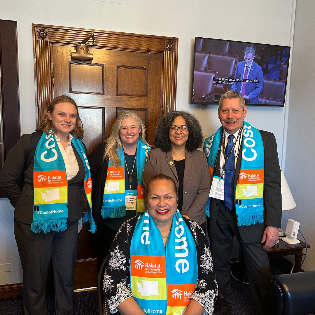 Last week, over 600 representatives of Habitat for Humanity affiliates from across the country poured onto Capitol Hill with one common goal: to advocate for policies that put homeownership within reach for hardworking families across the country. Chief Philanthropy Officer Sherrana Kildun, Habitat homeowner Peka, and myself collaborated with the Washington State Delegation of Habitats to meet with nearly all the elected officials representing our state in Congress. In each meeting, we talked about Habitat’s legislative agenda, which includes: