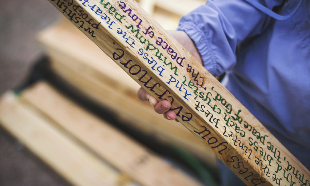The first wall raised in every Building on Faith home is the Wall of Hope. The Wall of Hope is long-standing Habitat for Humanity tradition that involves writing well wishes and blessings on the 2×6 studs that frame a home. Faith partners who contribute an annual gift $750 or more will receive a 2×6 Wall of Hope stud for members to write messages and/or prayers. Learn more about getting involved.
