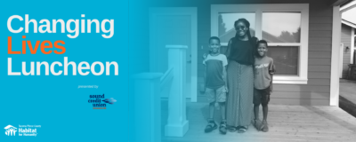 Tacoma/Pierce County Habitat for Humanity’s Changing Lives Luncheon presented by Sound Credit Union, is scheduled for Tuesday, March 4, 2025! We hope you’ll join us at Hotel Murano for stories of impact and a roadmap of where Tacoma Habitat is headed in 2025 and beyond.