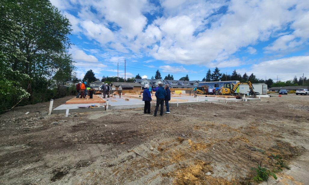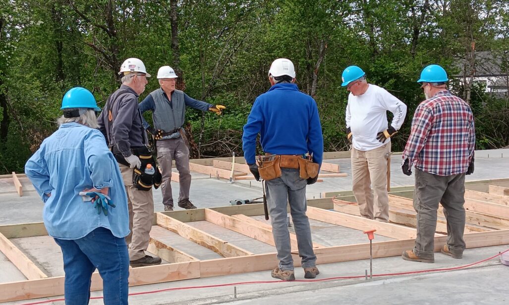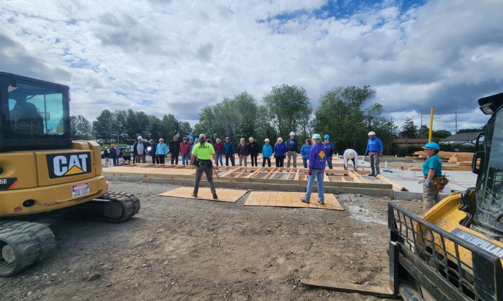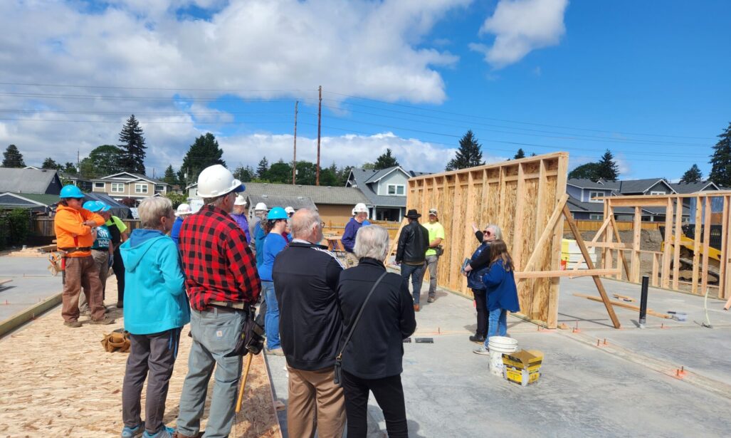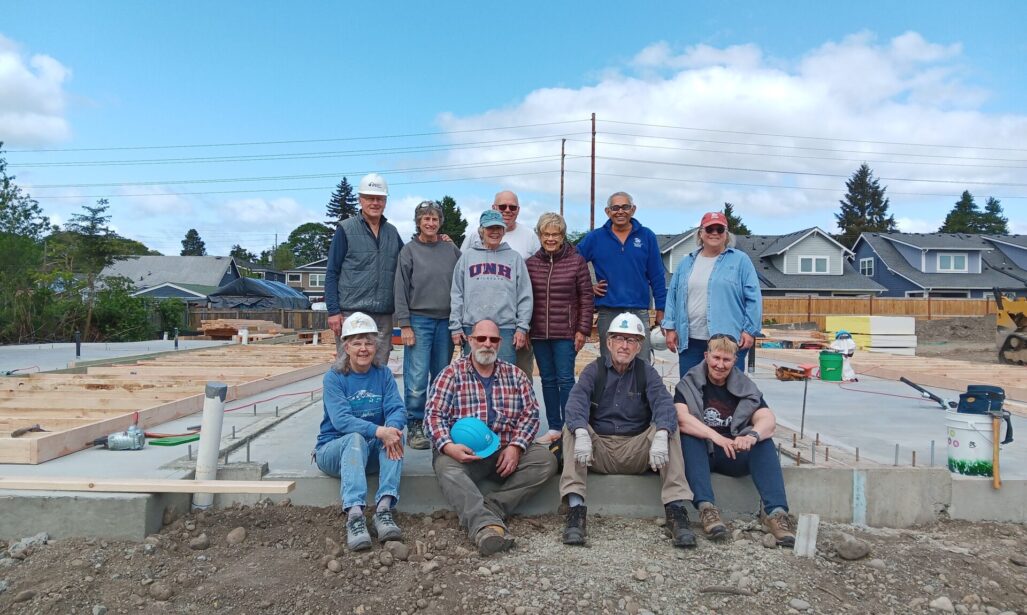 Frank’s pastor, Rev. Greg Kaurin of Redeemer Lutheran Church, led a blessing. “God bless us, bless these Habitat volunteers and partners for showing up. Bless Marilyn and the Lewis family, and the Tacoma/Pierce County Habitat for Humanity for being willing to do the work, for having the hard conversations, and for being the careful stewards of His work and making this possible. God, this work you do is sacred. Bless all those involved in it and those who benefit from it. Bless the volunteers; bless their time, their scraped hands and sore muscles, and sacrifices they make for the sake of a decent and affordable home, a place of wellbeing to raise a family and create a caring community. Bless Habitat, Team Lewis and Women Build, and the Building on Faith for their hope and their willingness to work for what can be instead of settling for what has been; for working from a place of abundance instead of scarcity; and for modeling how, when we work together, we are indeed better. Bless all on this build, in memory of Frank Lewis, the first construction manager of this Habitat for Humanity affiliate. Bless family and friends for their willingness to partner with Habitat and the Lewises; bless them for being your hands and loving others in such a tangible way. Bless them with strength for the long days for when the work is easy, and a strong sense of humor when it’s not; burdens that are light, and backs that are strong for when they aren’t. Finally, we ask that this site be blessed with laughter and love, good weather and good friends. May the work done here build as much character as callouses, so that when we gather here again we will have built a home as much as a house on one tiny plot of the peaceable kingdom here on earth as it is in Heaven, Amen.”