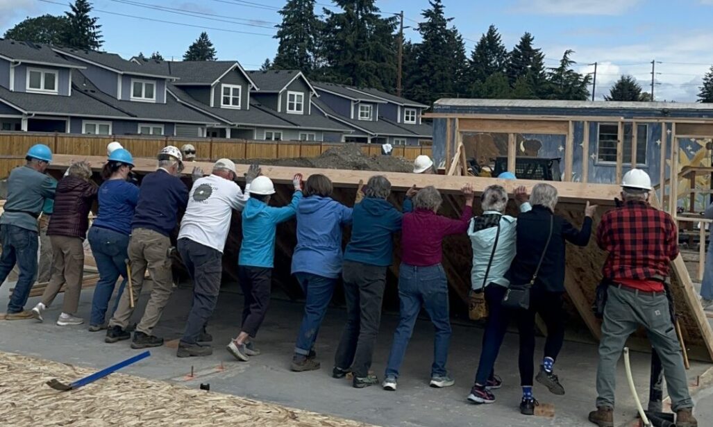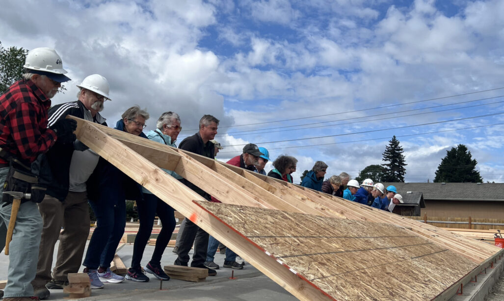 After months of fundraising, Tacoma Habitat founders gathered for a special wall raising on a sunny Saturday in May. Frank’s wife Marilyn was present, along with many of Frank’s family members, and Habitat volunteers turned friends. No one wanted to miss honoring Frank’s impact on Tacoma Habitat and the community at large.