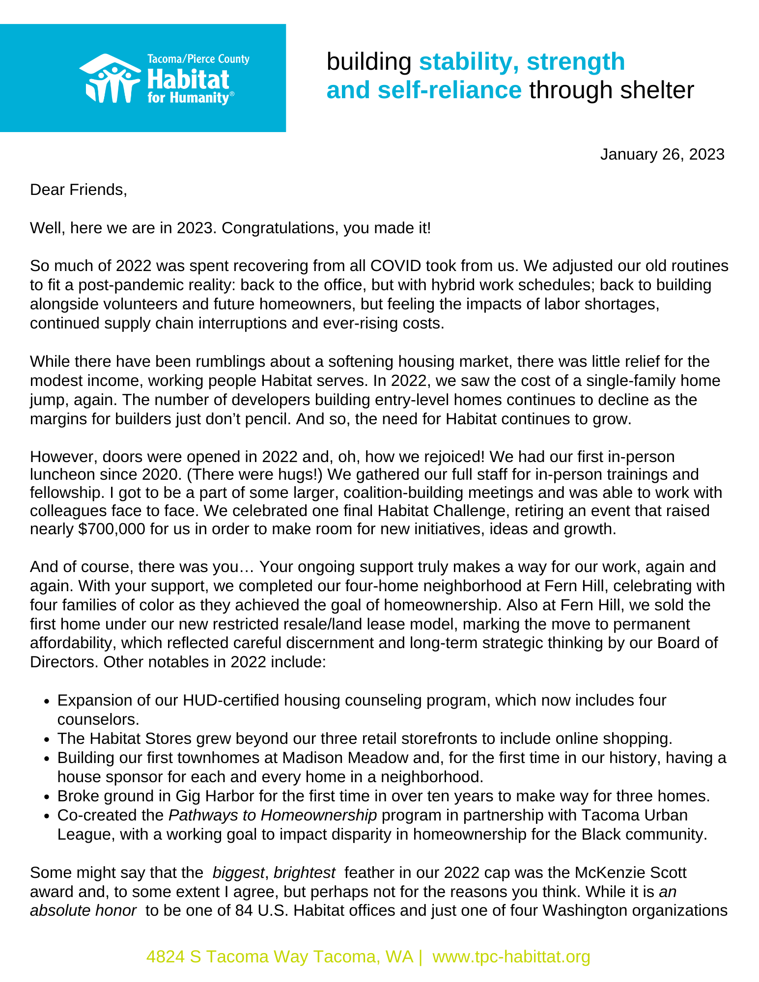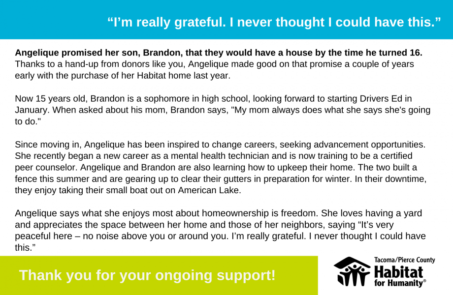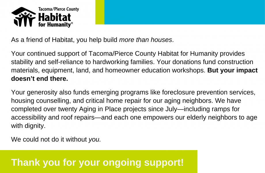 Click the image below to read a report on your gifts’ impact and the amazing sense of community emerging in Tillicum among a group of recent homeowners.
