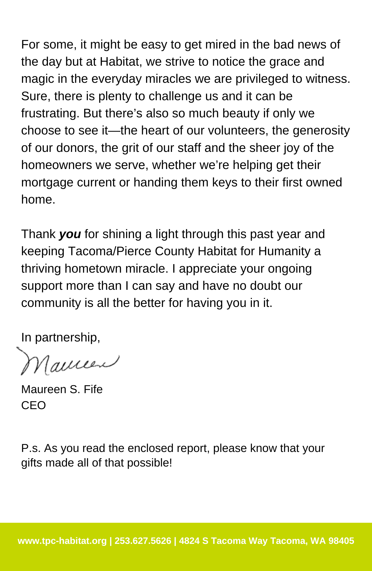 Click the image below to read CEO Maureen Fife’s message to our 2017 donors.