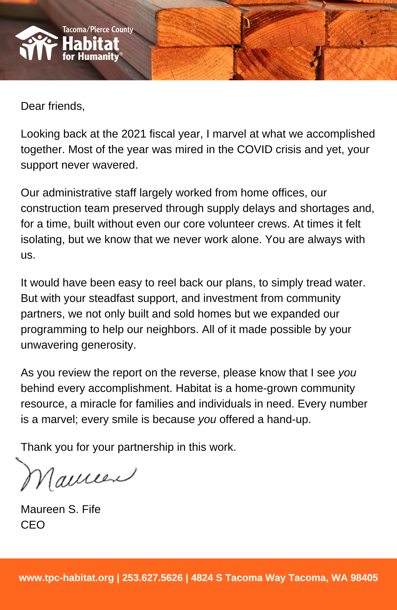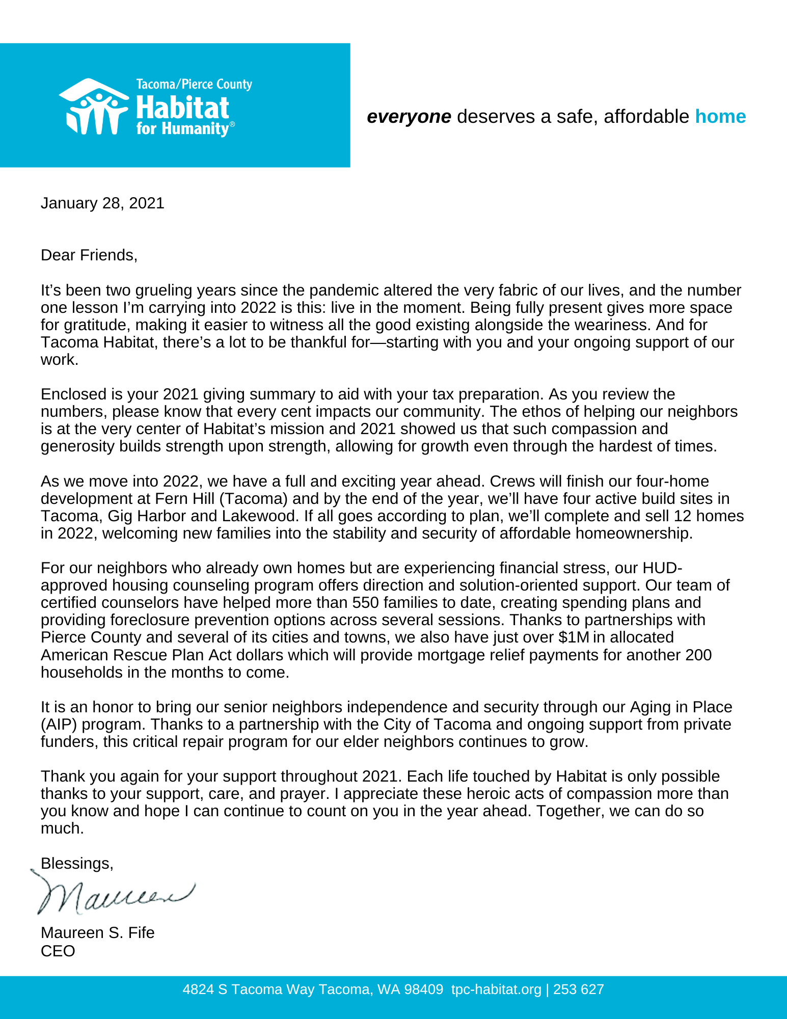 Click the image below to read CEO Maureen Fife’s message to our 2020 donors.
