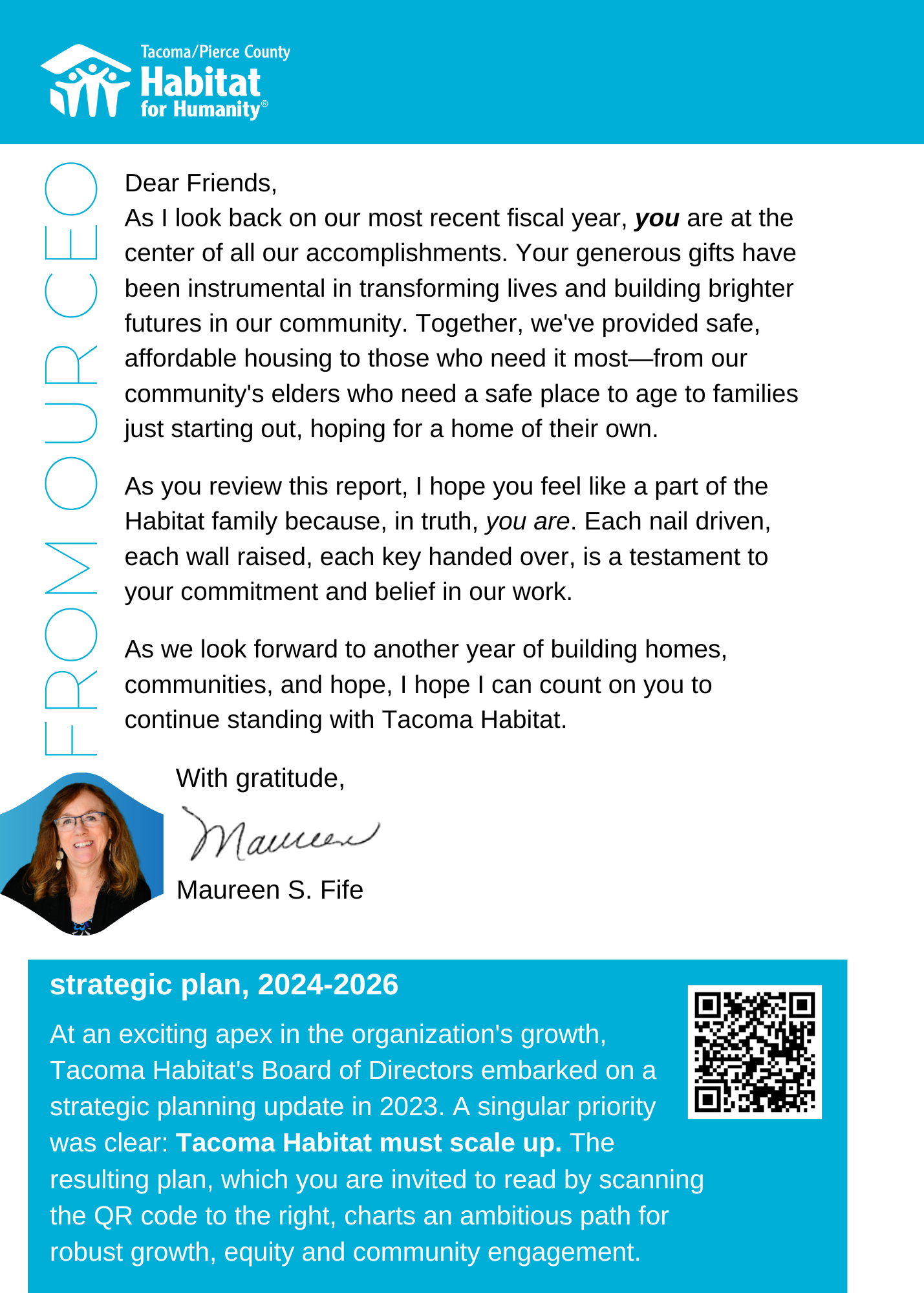 Click the image below to read CEO Maureen Fife’s message to our 2016 donors.